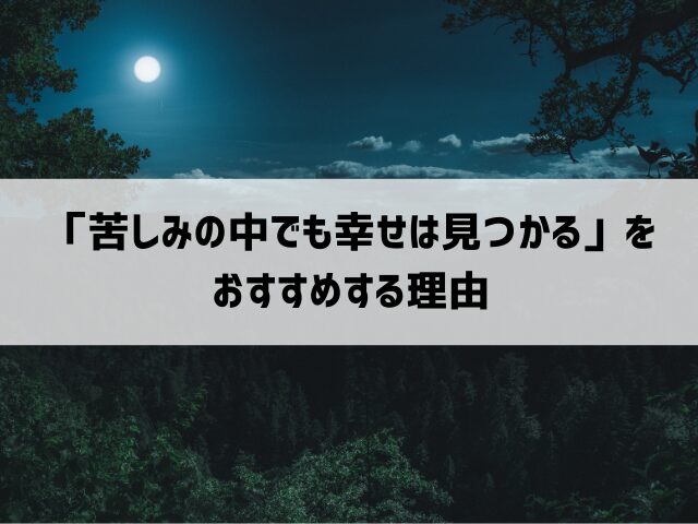 今回は『苦しみの中でも幸せは見つかる』をおすすめする理由と題して、この本の魅力を徹底解説します。